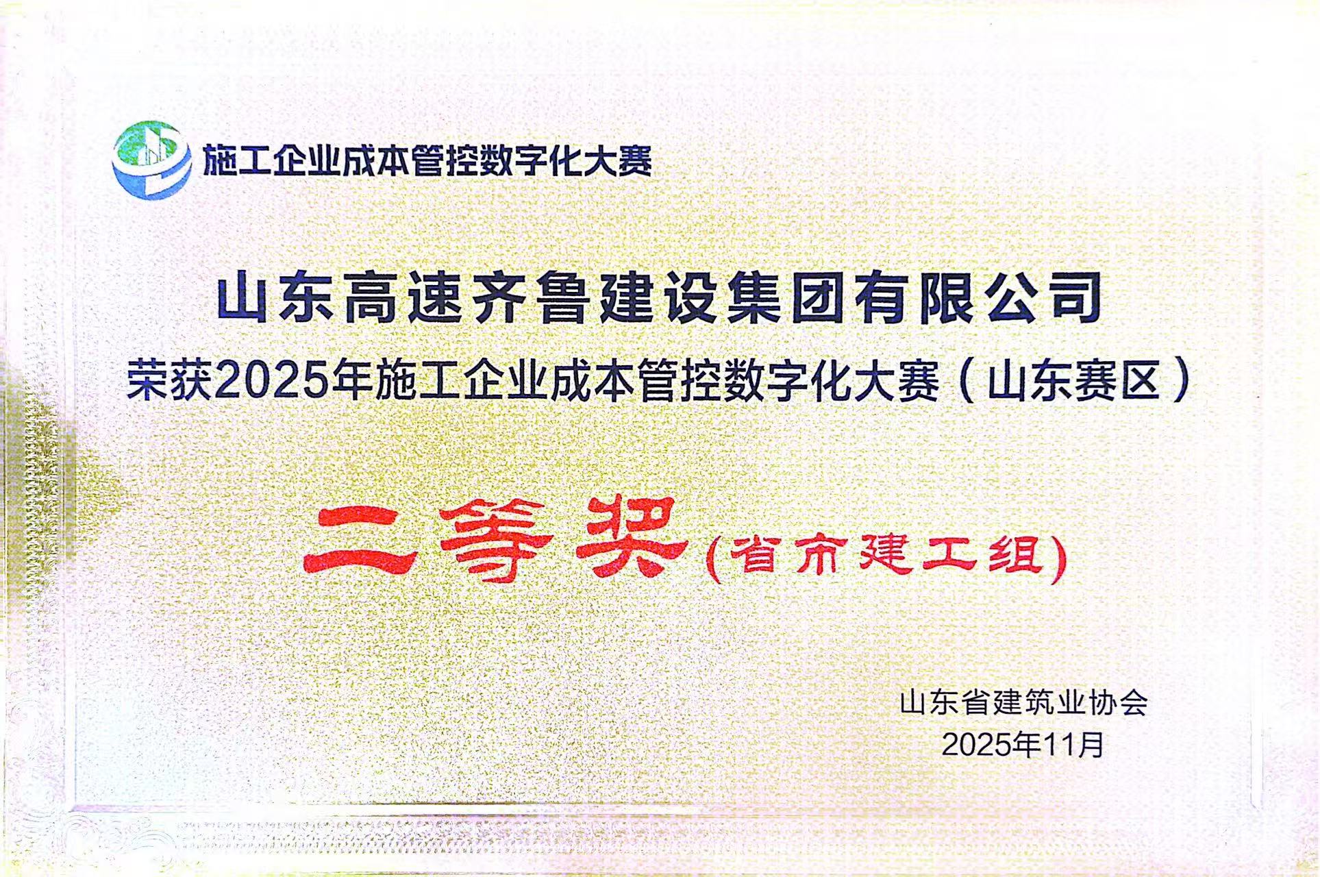 齐鲁建设荣获省级成本管控数字化大赛二等奖